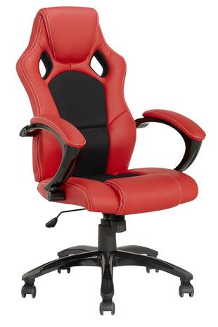 Pohodlné atraktivní kancelářské křeslo s houpacím mechanismem s aretací v jedné poloze, plastovými kolečky, na pětiramenném kříži v provedení barvený plast. Křeslo je vyrobeno ze 100% PU kůže na všech částech korpusu ,v barevných kombinacích červeno-černá a hnědo-béžová, na sedací a opěrné části s perforovanou PU kůži pro vzdušnost sezení. Nosnost do 120 kg.