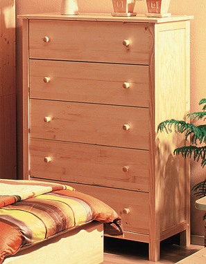 Komoda s 5 zásuvkami ze smrkového masivu. s úpravou lakem. Nábytek Natur je určen nejen na chaty a chalupy, ale je vhodný také pro studentský pokoj. Kvalitní český výrobce.