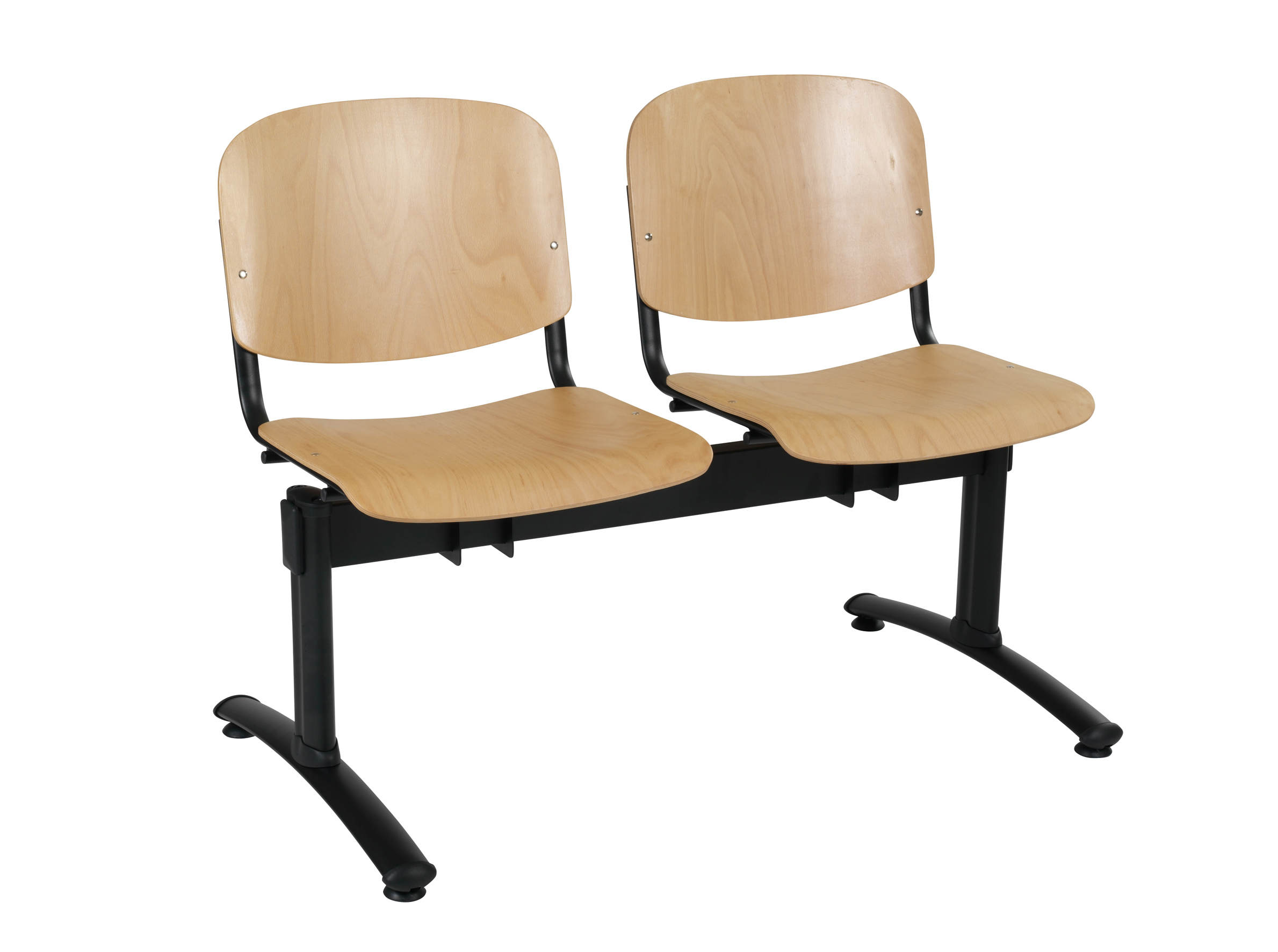 Dvojmístná lavice s dřevěným sedákem a opěrákem z bukové překližky lakované transparentním lakem. Černě nebo šedě lakovaný rám. Sedadlo lze nahradit odkládacím překližkovým stolkem- dezén lakovaný přírodní buk, cena lavice zůstává nezměněna. Nosnost 120 kg/1 místo.