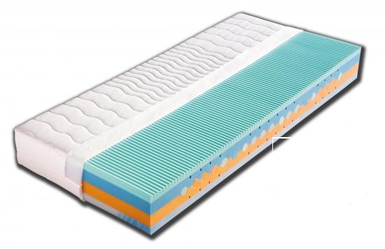Kvalitní oboustranná matrace tvořena perforovaným jádrem ze studené pěny dvou tvrdostí s vloženými válci ze studených pěn různých tuhostí. Nosné vrstvy tvoří speciálně profilovaná masážní vrstva s panáčky, která zabezpečuje dokonalé prokrvení pokožky a uvolňuje svaly v průběhu spánku. Druhou nosnou vrstvu tvoří extrémně prodyšná HR studená pěna se změkčujícím efektem a příjemně hladkým, nebeským povrchem. Matraci je vhodné položit na pevný nebo polohovací lamelový rošt. Nosnost do 120 kg+ zdarma 1 x polštář Lukáš.