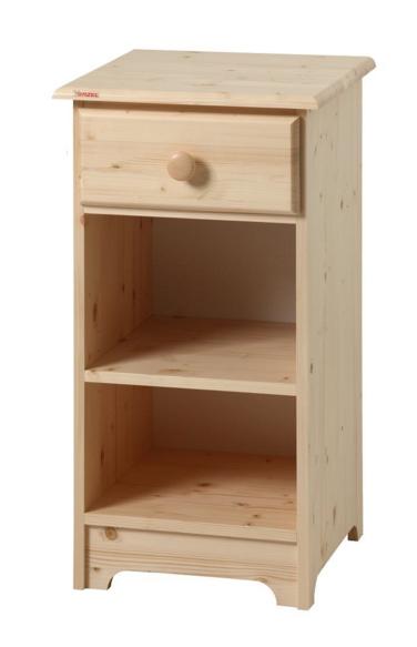Noční stolek ze smrkového masivu v přírodním provedení je vhodným doplňkem k postelím Senior a k Pečovatelským lůžkům Thorsten a Berghen. Záda nočního stolku: sololak.