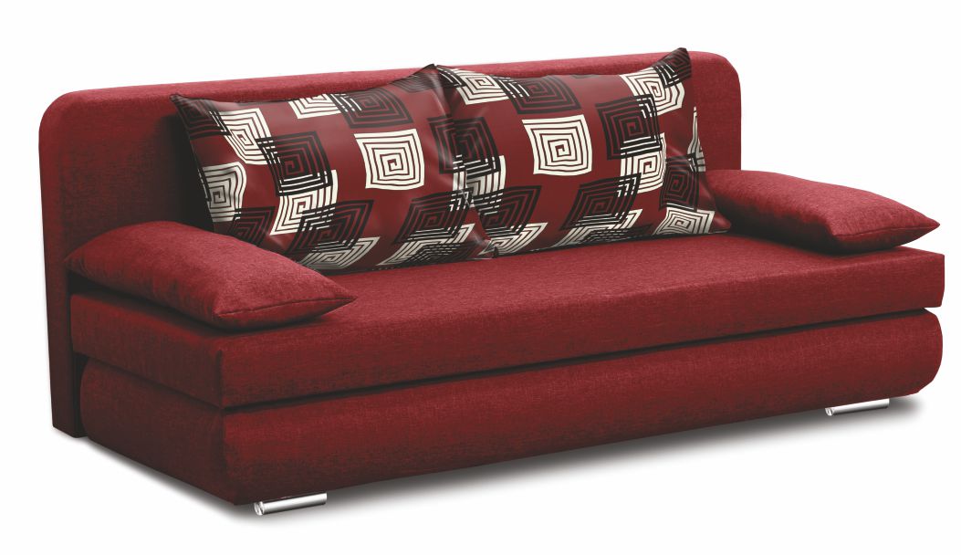 Celočalouněná pohovka s velkým úložným prostorem. Lamelový rošt, výplň tvoří PUR pěna. Součástí pohovky jsou čtyři polštářky, chromové nohy.