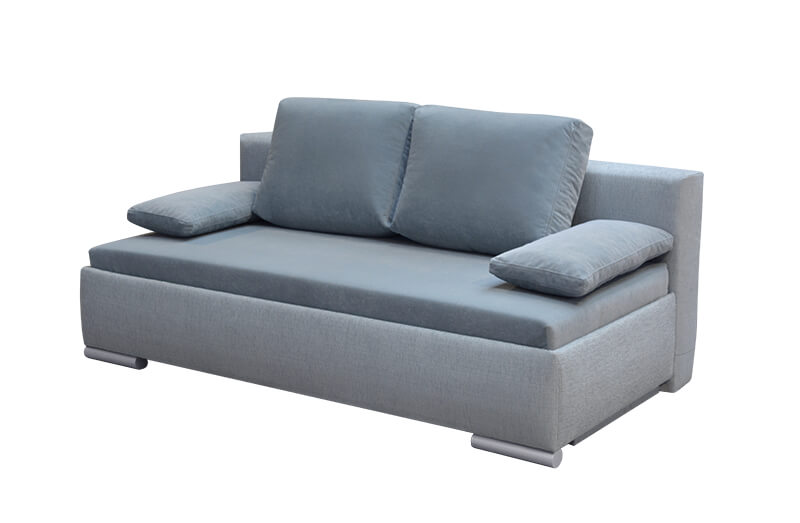 Rozkládací pohovka s úložným prostorem. Výplň tvoří vysokoelastická PUR pěna uložená na lamelách. Pohovka je vhodná na každodenní spaní. Dřevěné nohy jsou v ceně, kovové jsou za příplatek. Dva opěrkové polštáře mají snímatelný potah.