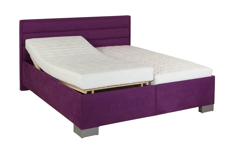 Čalouněná postel s volně loženou 5-zónovou sendvičovou matrací Relax, volně loženým polohovacím lamelovým roštem a úložným prostorem, který je přístupný od nohou. Nadstandartní výška lehací plochy cca 58 cm. Prošitý povrch matrace. Nosnost matrace 120 kg. Český výrobce.