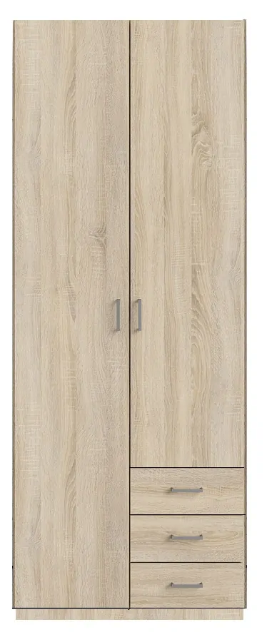 Šatní 2-dveřová skříň v provedení dub sonoma. Uvnitř skříně je šatní tyč.