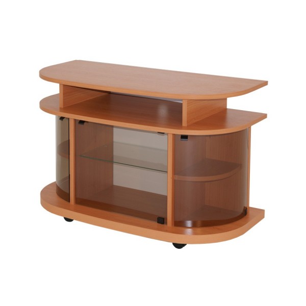 TV stolek na kolečkách z lamina tl. 1,8 cm s ABS hranou a kouřovým sklem.