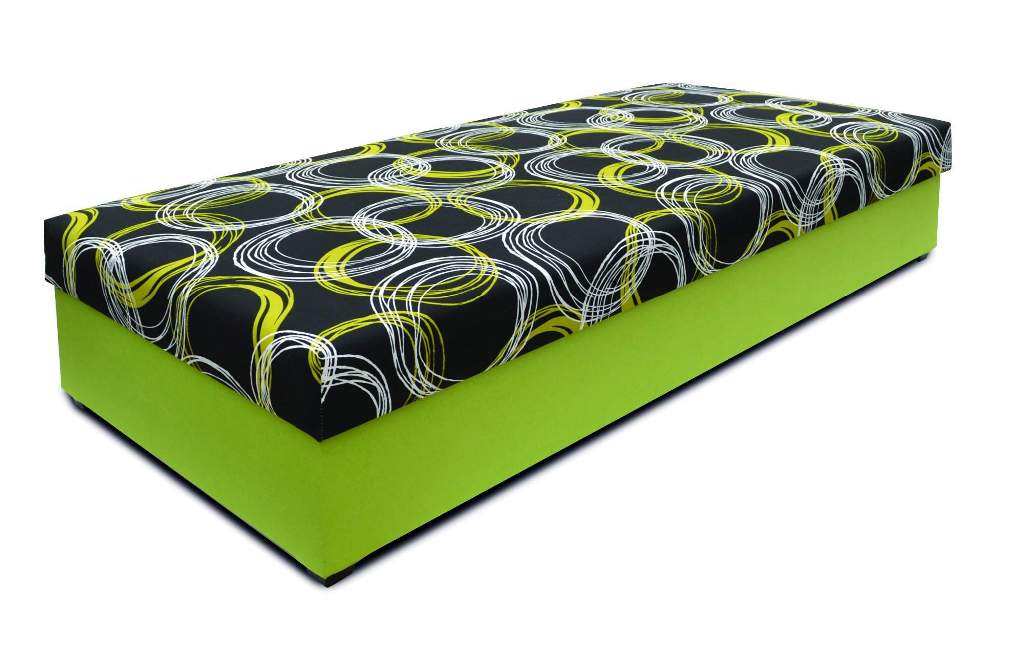Čalouněná válenda s velkým úložným prostorem v bílém laminu s odvětrávacími otvory, přístupný z boku. Válenda má pružinové jádro položené na lamelovém roštu s nosností do 90 kg. Válendu si můžete objednat v rozměru 80x202 cm za 4590,- Kč. Kvalitní český výrobce.