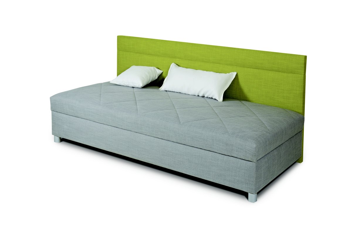 Válenda s dlouhým čelem má pružinové jádro položené na pevném základu (desce) s nosností do 90 kg. Přístup k úložnému prostoru z boku postele. Úložný prostor je vyroben z bílého lamina s odvětrávacími otvory. Korpus a čelo si můžete nově objednat ze širokého vzorníku látek. Uvedená cena je bez polštáře. Kvalitní český výrobce.