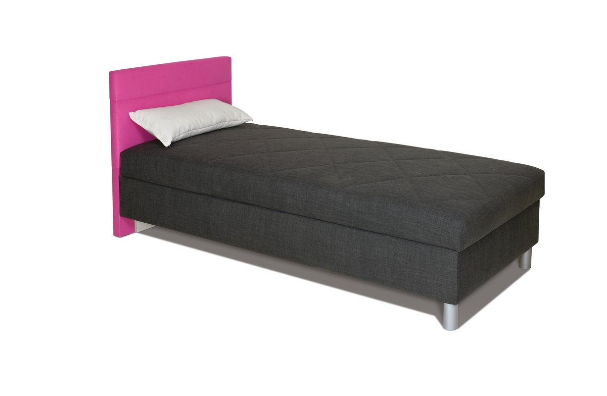 Válenda s krátkým čelem má pružinové jádro položené na pevném základu (desce) s nosností do 90 kg. Úložný prostor je vyroben z bílého lamina s odvětrávacími otvory. Korpus a čelo si můžete nově objednat ze širokého vzorníku látek. Uvedená cena je bez polštáře. Kvalitní český výrobce.