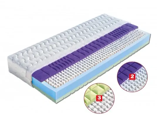 Jedná se o luxusní matraci s dvojí tuhostí a vynikajícími ortopedickými vlastnostmi. Vrchní fialová antidekubitní vrstva je tvořena studenou / HR bio pěnou, která obsahuje geneticky neupravený sója olej, tuhost č. 2. Světle zelená nosná vrstva je vyrobena z MediFoam pěny (28 kg/m³), tuhost č. 3. Taštičkové jádro vytváří maximální komfort pro perfektní odpočinek a spánek. Může být položena na všechny typy roštů, dokonce i na pevnou desku nebo motorový rošt.