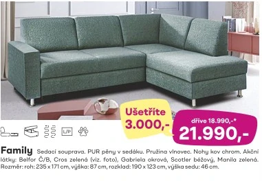 Rohová, rozkládací sedací souprava FAMILY21 990 Kč/ ks
