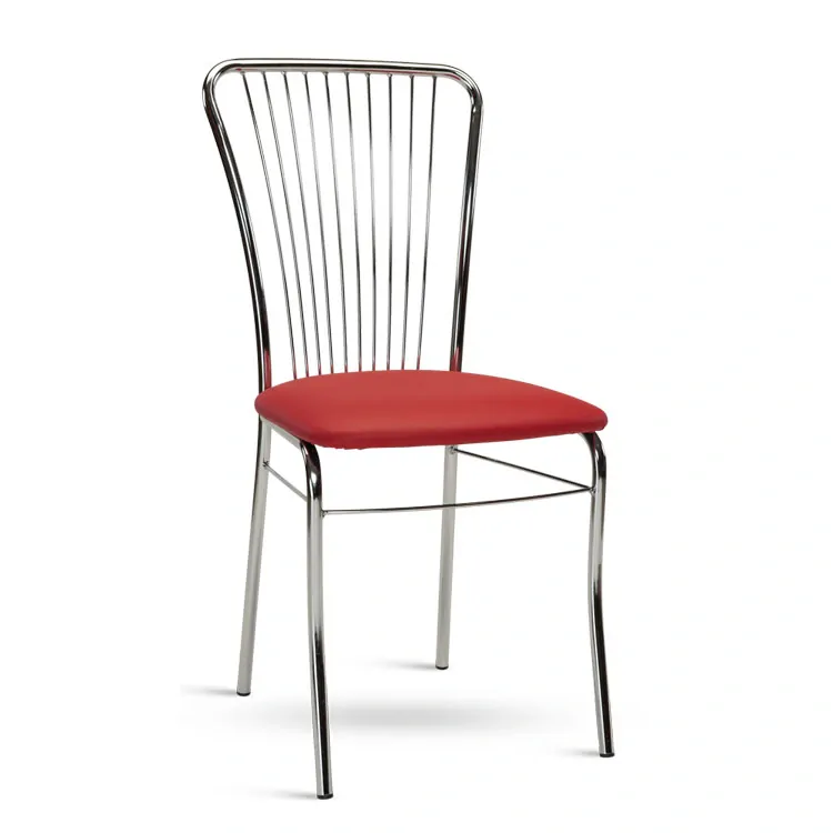 Kovová židle, sedák čalouněný látkou nebo koženkou. Není vhodná do zátěžového provozu.